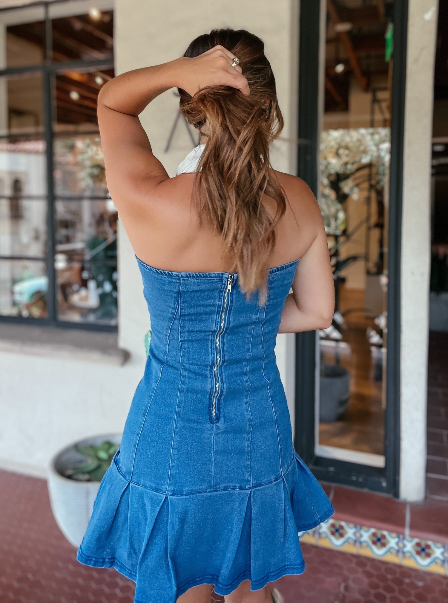 Be a true denim darling in this Blue Jean Baby Tube Mini Dress! Featuring a strapless tube body and a fun peplum bottom, it's the perfect piece for summer and all fall! Show off your unique style while staying comfy and looking cute! Get it now and strut your stuff!