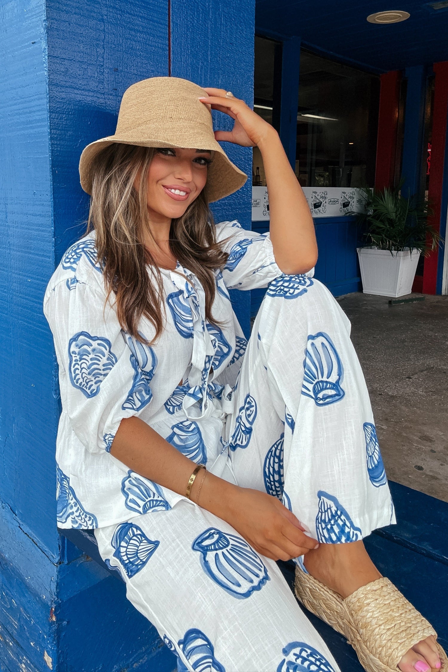 Sam Blue and White Linen Shell Pants