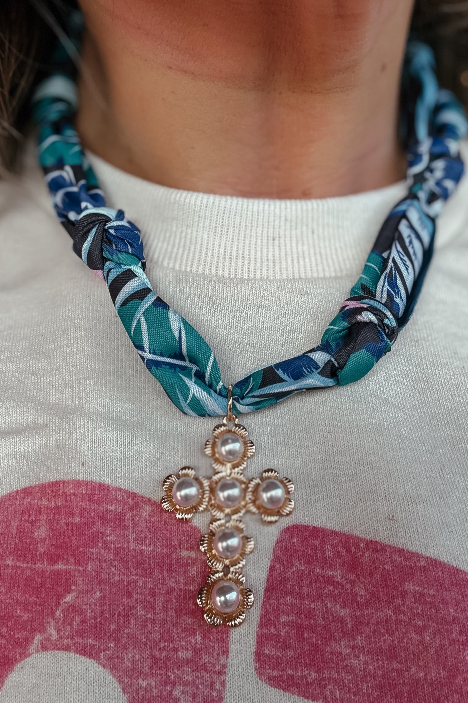 Blue Cross Satin Bandana Necklace