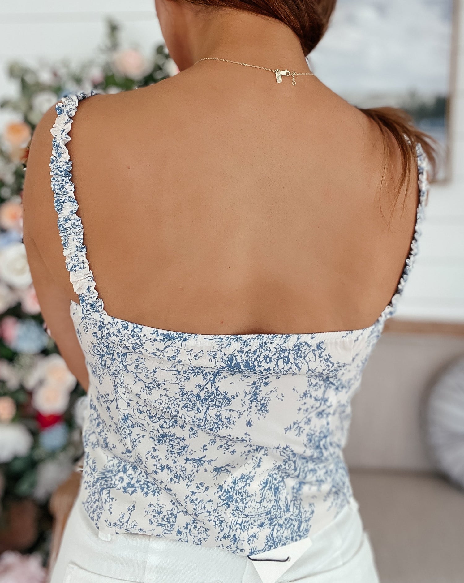 This dainty floral corset crop top adds a pop of fun to any outfit. Pair it with white denim for a fresh and playful look. (No need to be blue with this top around!)