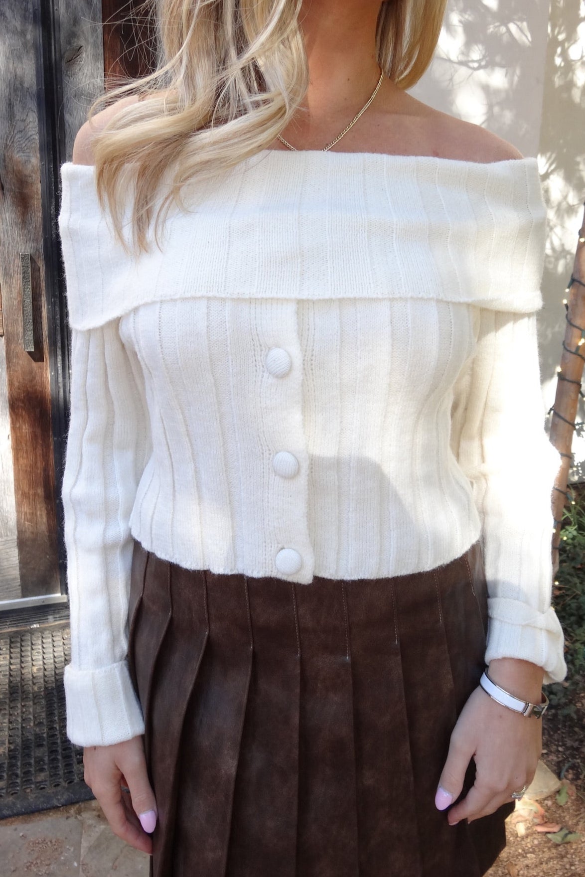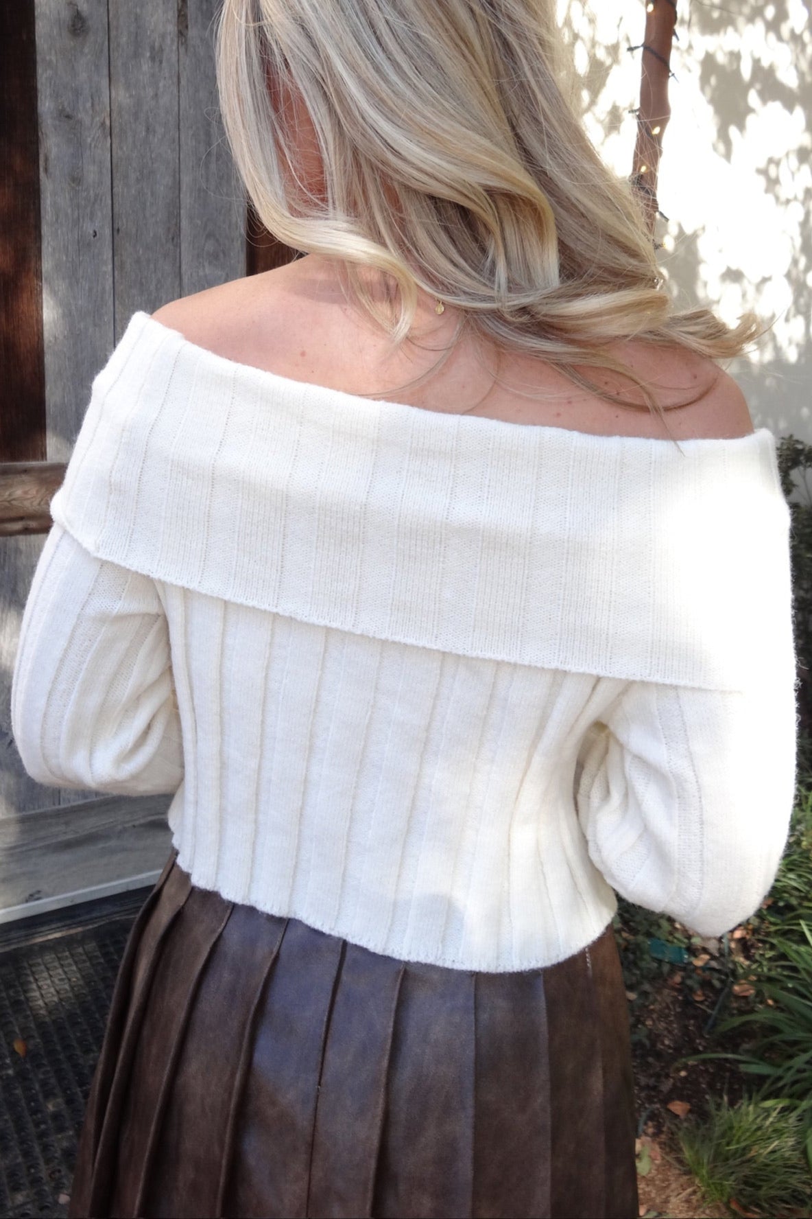 - Features: Off the shoulder. Cropped fit.