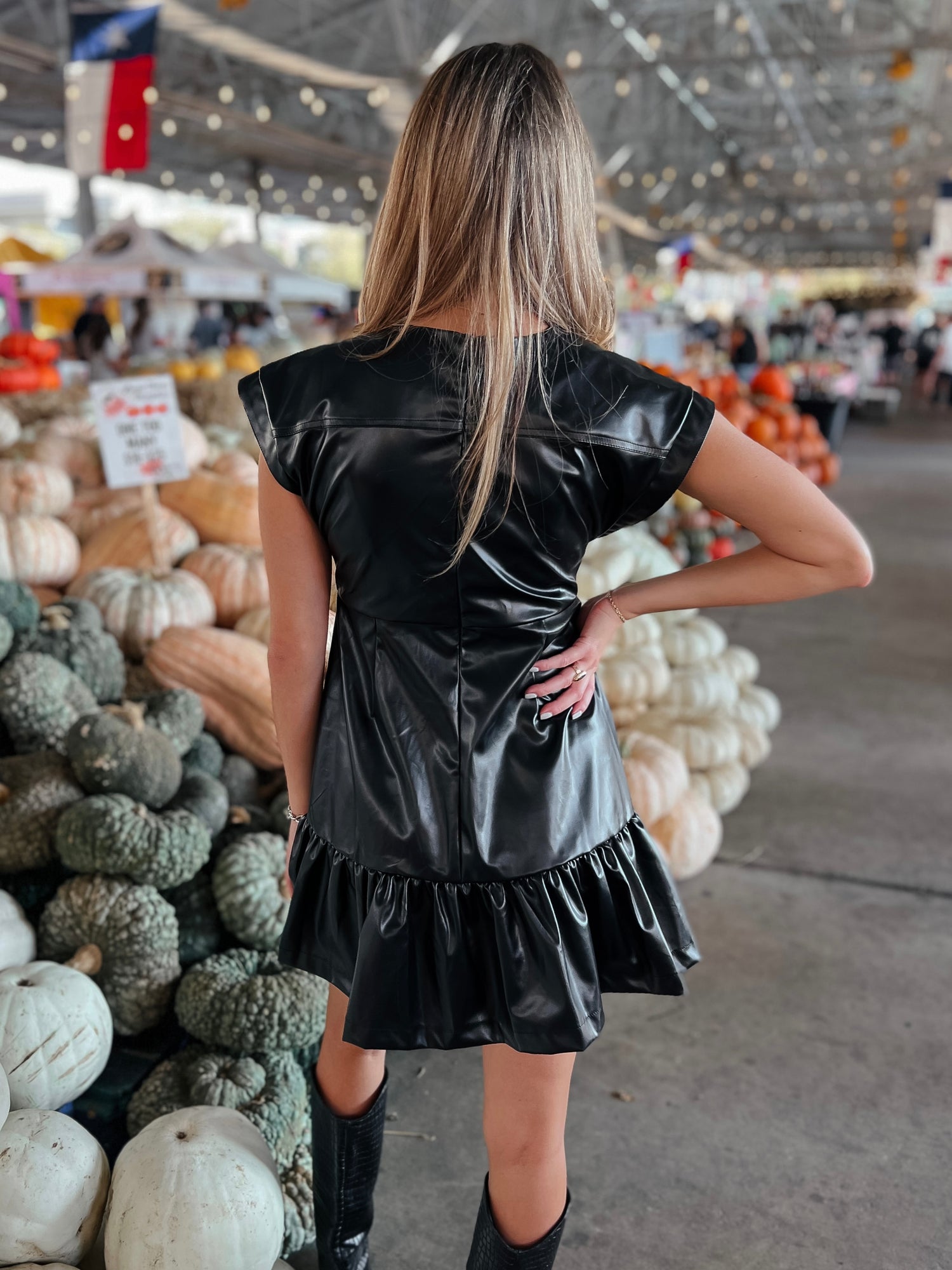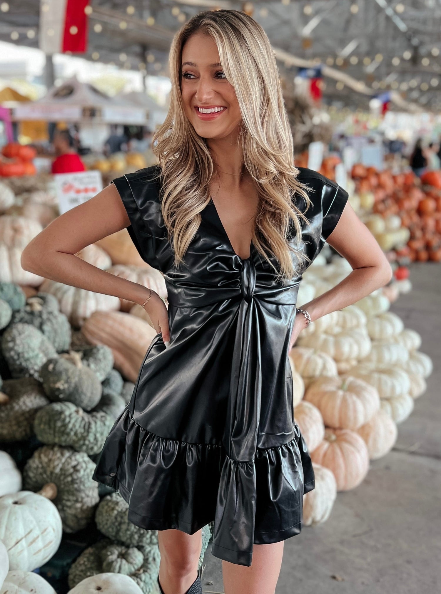 Introducing the Camila Black Leather Knot Mini Dress - your perfect fall/winter staple. With a sleek faux leather finish and a knot detail, it's sure to take any look to the next level. Snuggle up in style this season with this timeless piece!