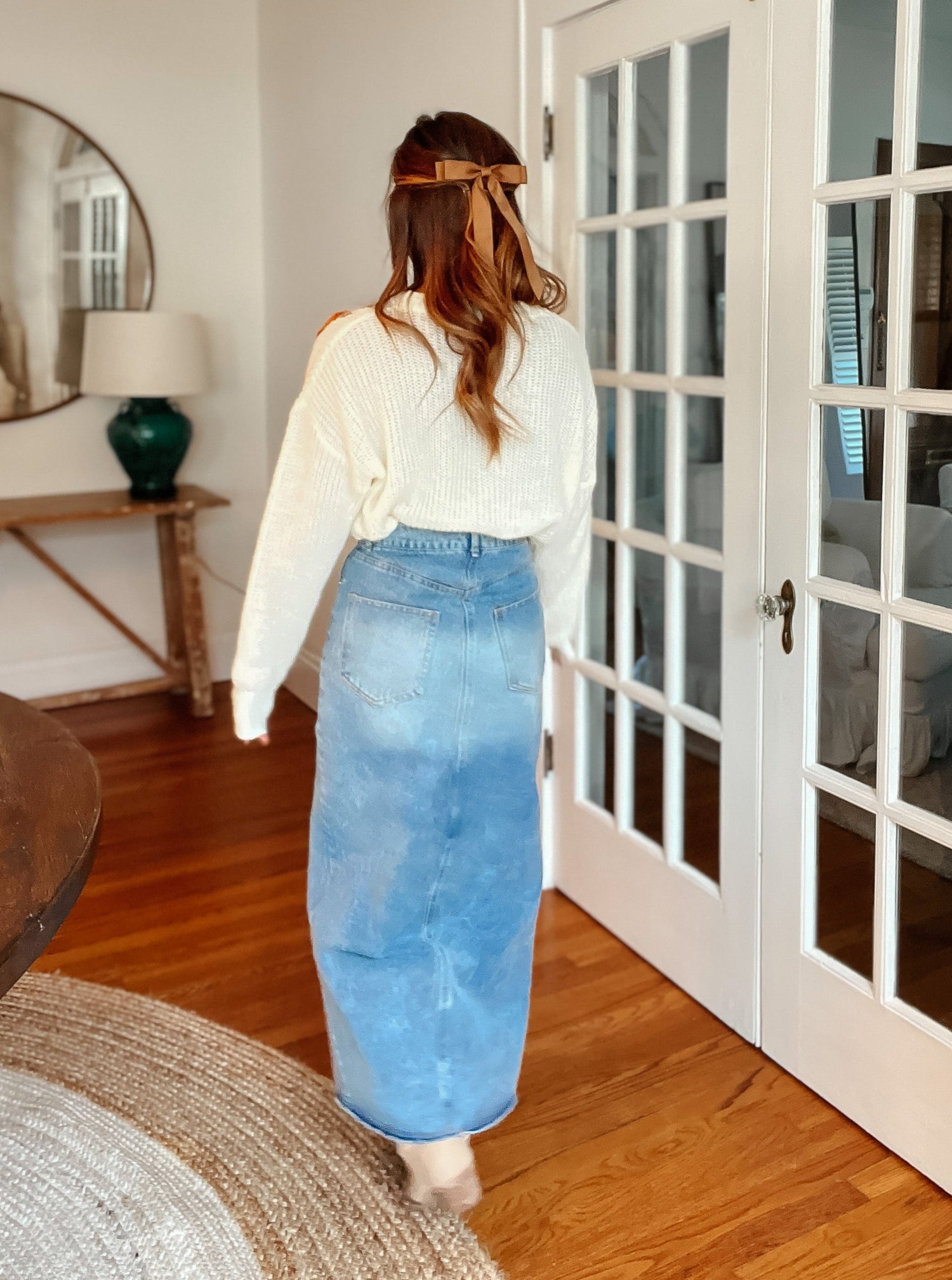 Stay cozy all season long with our Stitched Pumpkin Sweater!