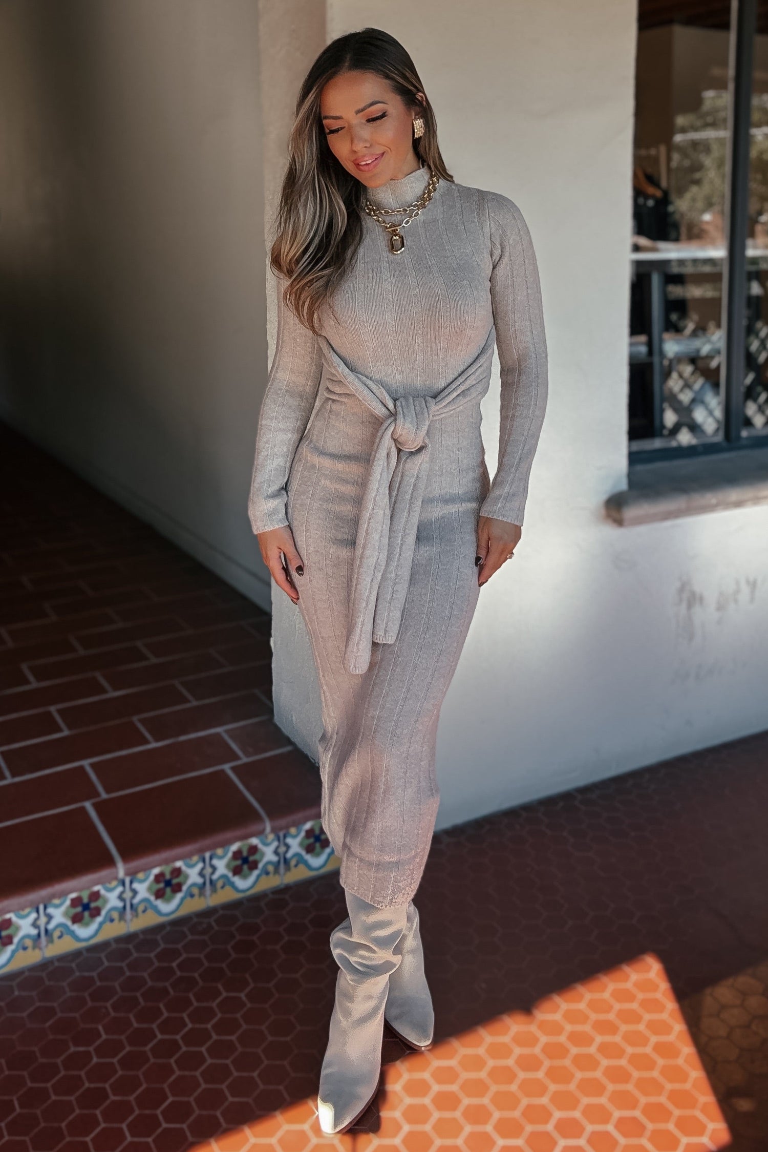 Holland Taupe Long Sleeve Sweater Midi Dress