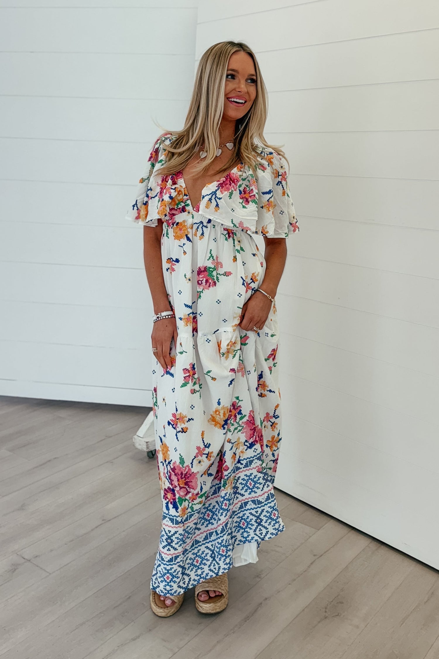 - Features: Deep V. Flutter sleeve. Elastic around bust. Lined.