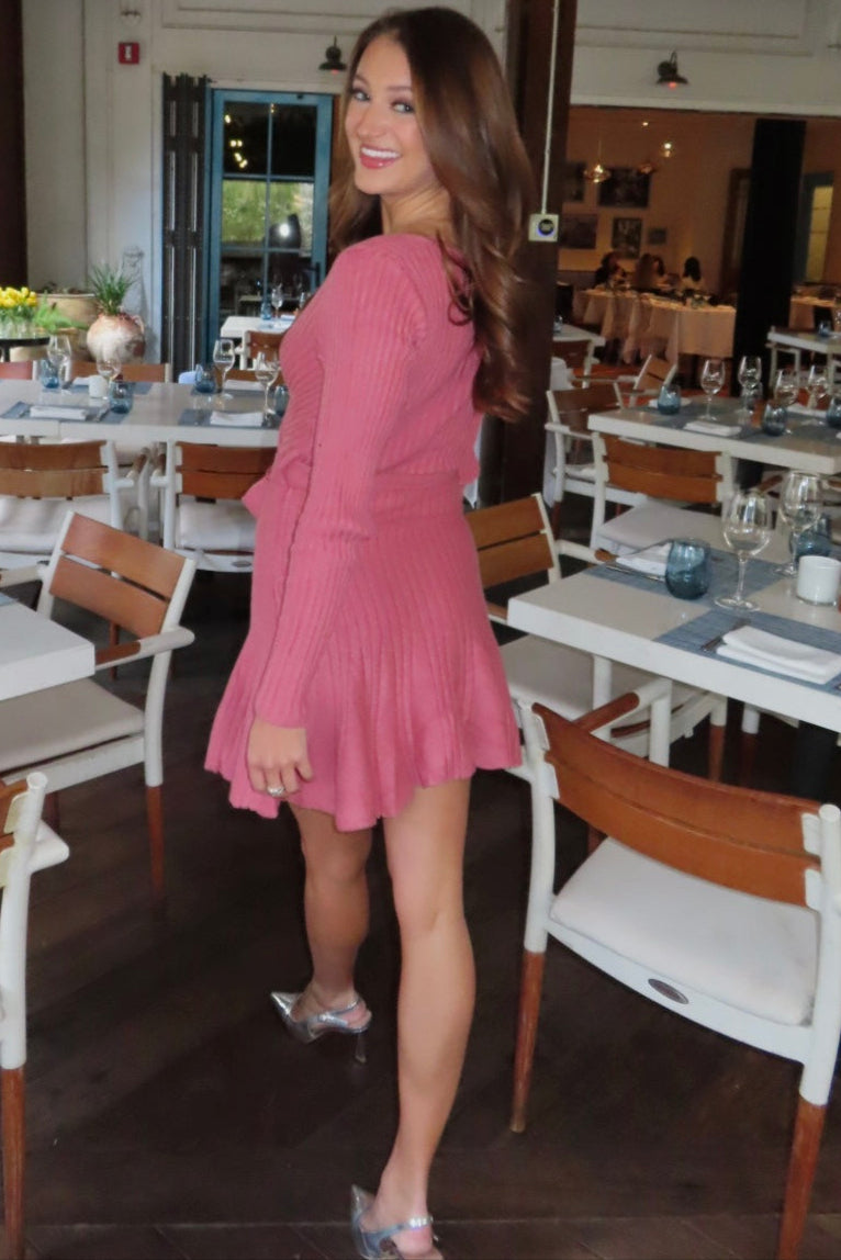 Sweetheart Rich Mauve Ribbed Sweater Wrap Dress