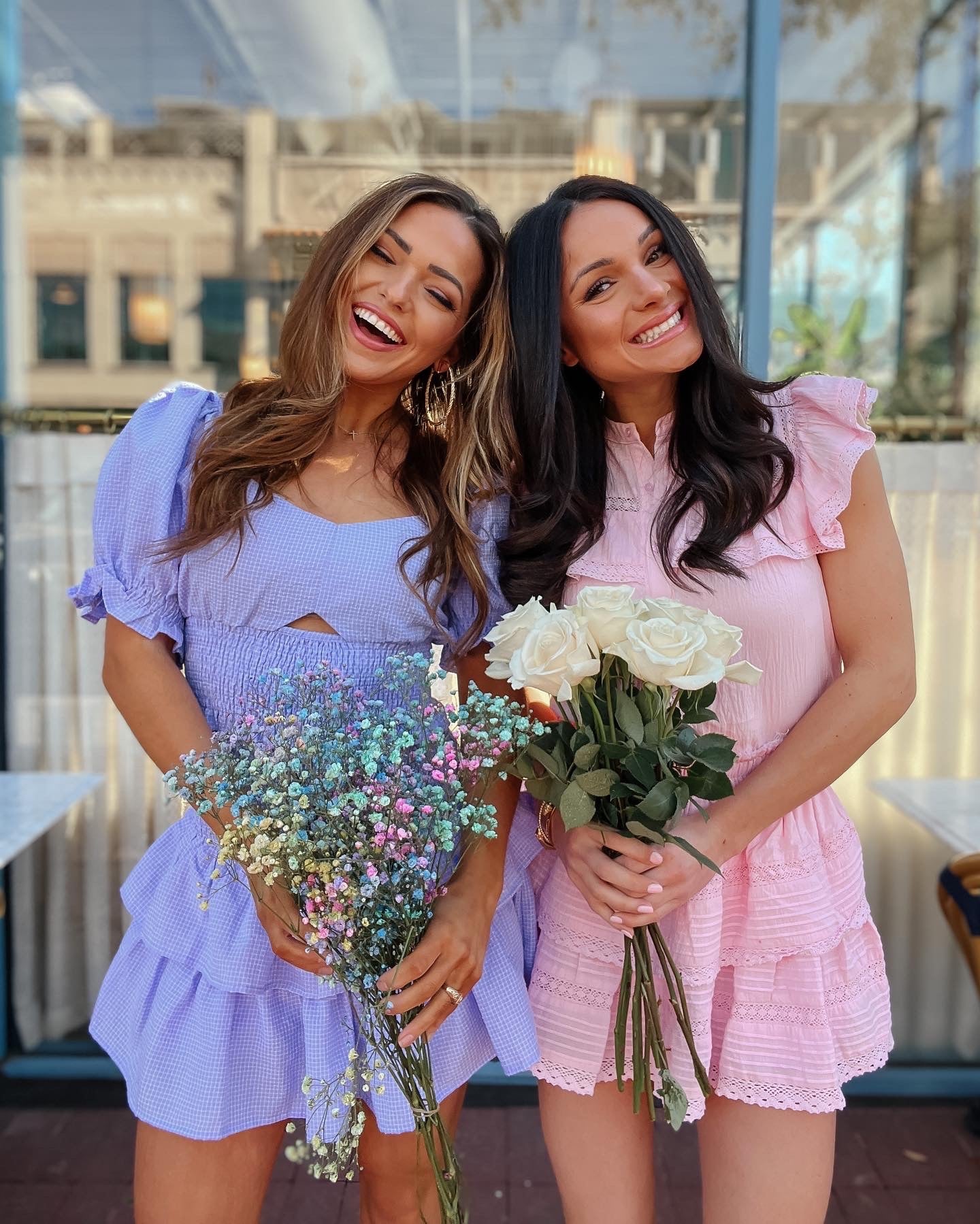 Riley (first picture) is 5'3 and wearing a size small. Hanna (second picture) is 5'6 and wearing a size small.