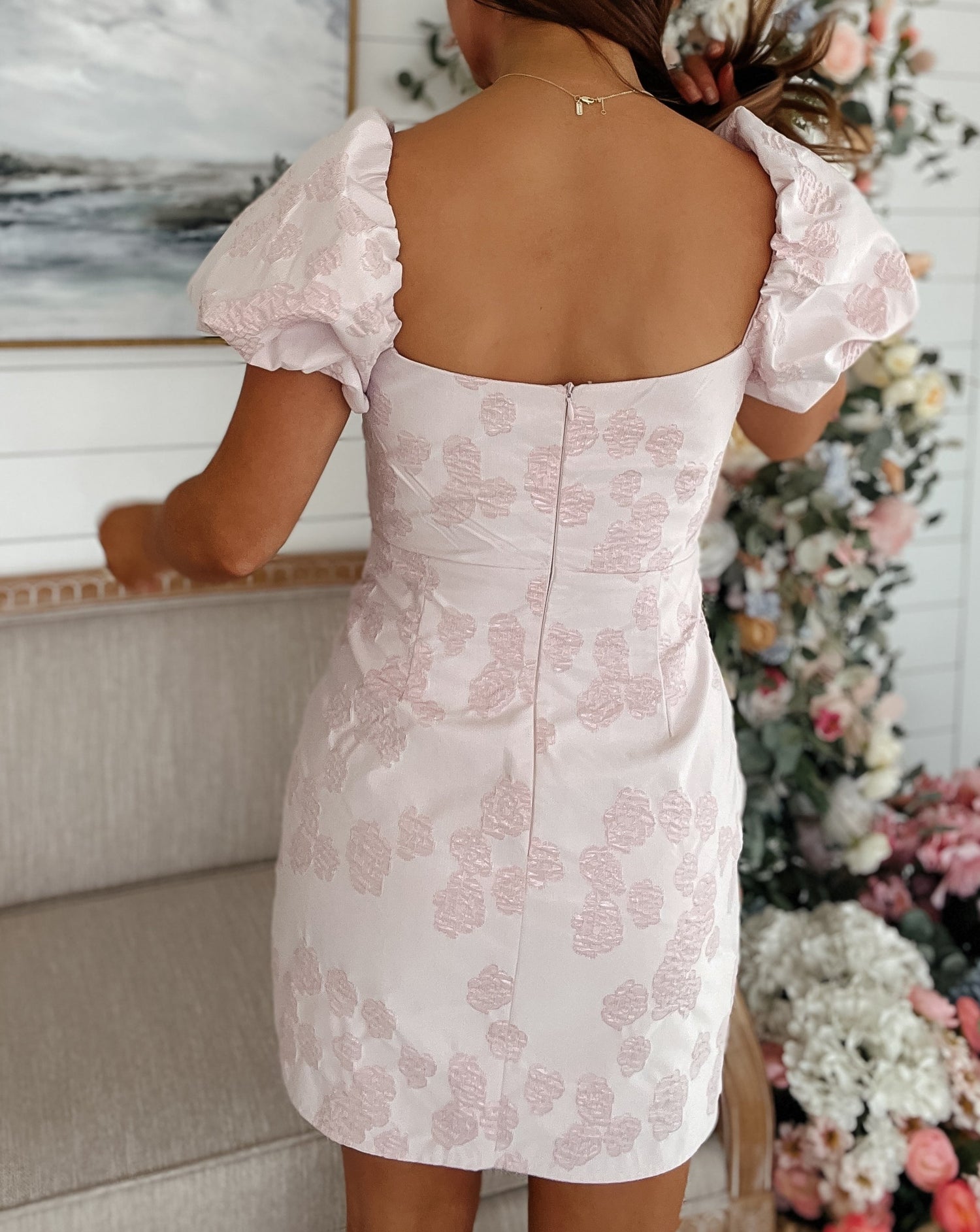 Tatum Rose Embossed Pink Corset Puff Sleeve Mini Dress