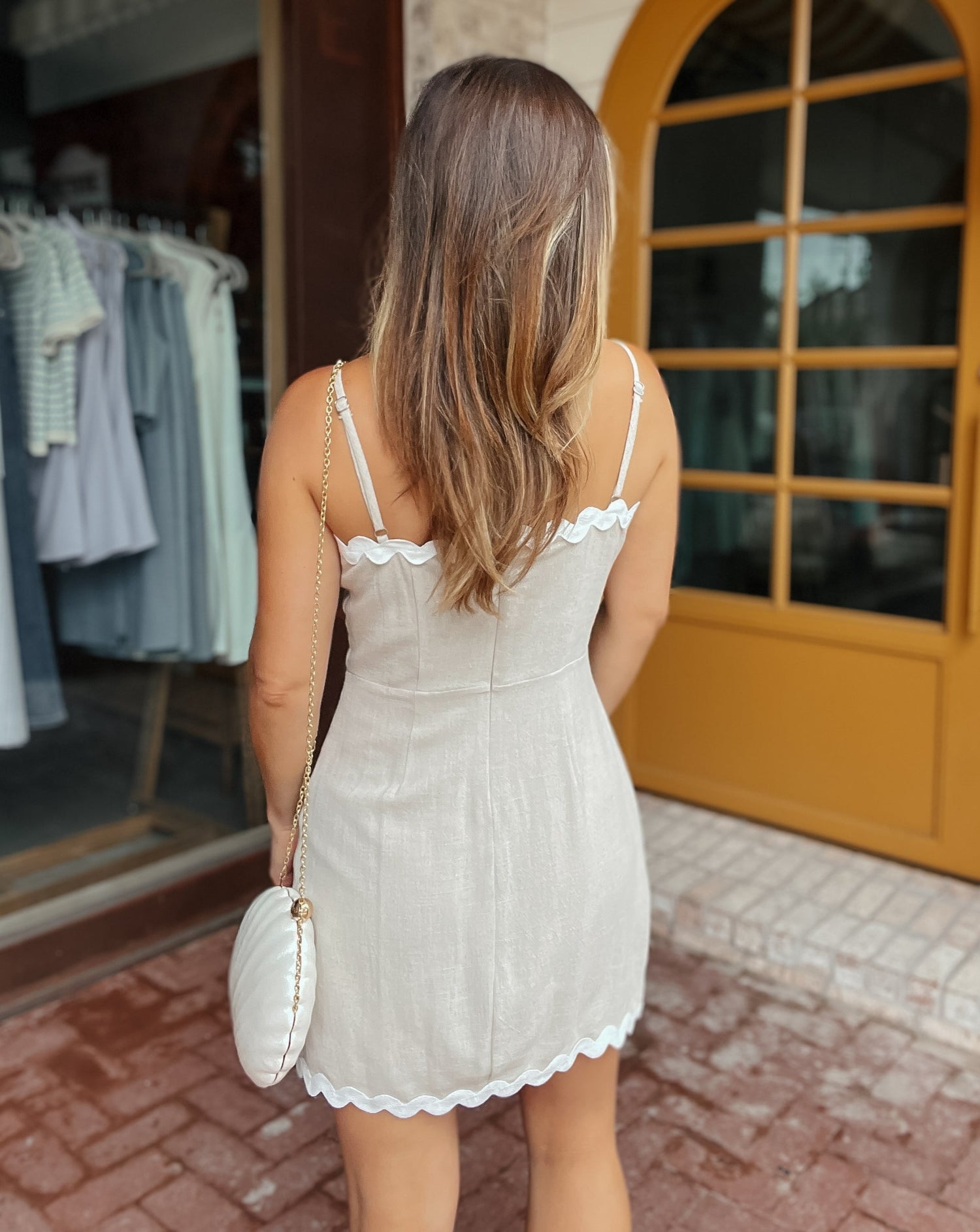 Ready for sandy toes and sun-kissed skin? The Roxy Beige and White Wave Trim Linen Dress is the perfect companion for your beach vacation. With its lightweight linen fabric and playful wave trim, you'll look effortlessly chic while staying cool and comfortable. Pack this dress and get ready to make a splash!