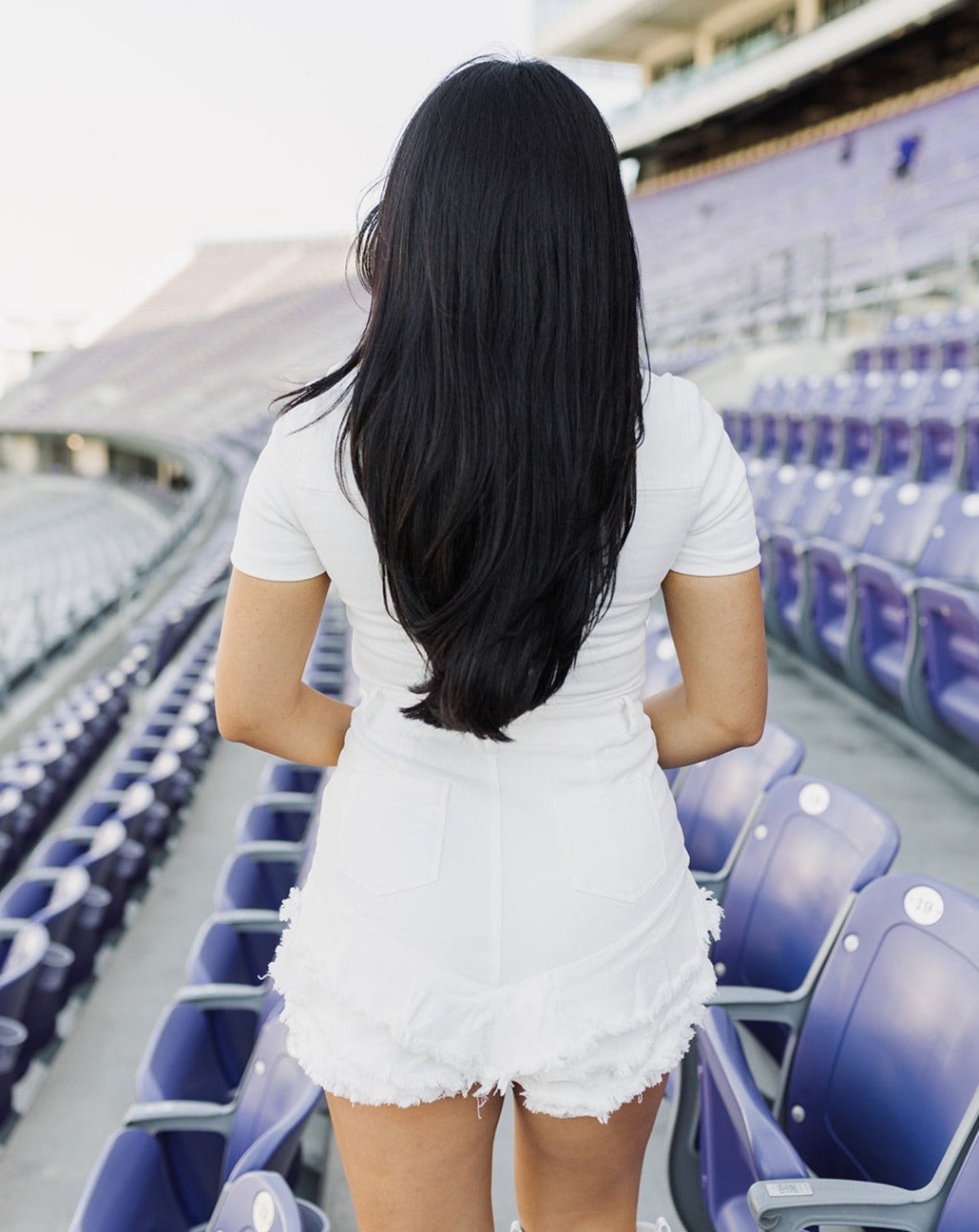 Look cute and show your team spirit in this comfy gameday romper! The Western White Denim Ruffle Romper takes the classic denim pieces you know and love and adds a neutral touch perfect for any game day. Be ready to cheer on your favorite team in style!